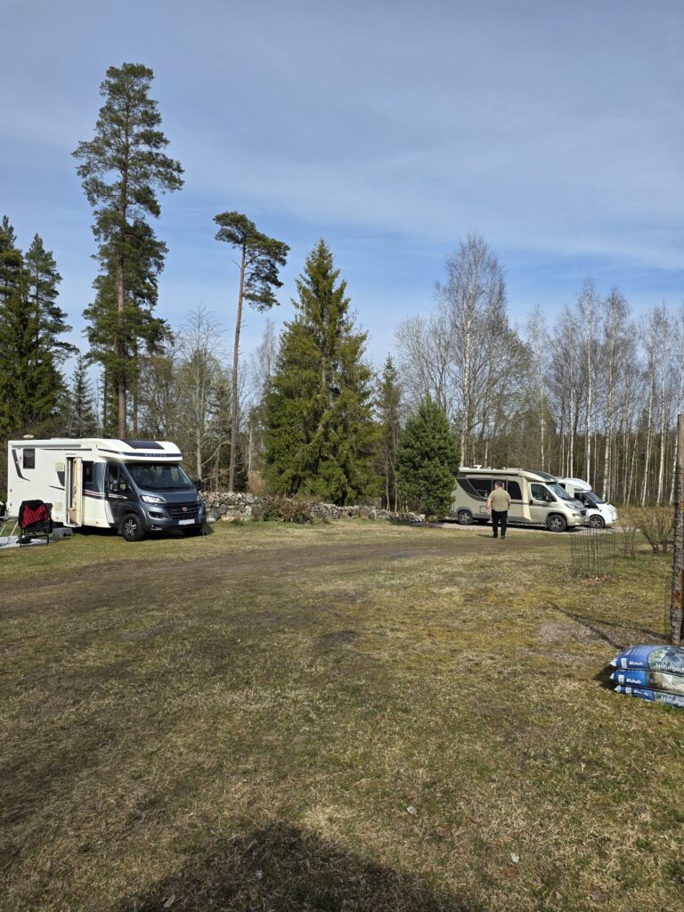 Ställplatsen ligger naturnära, omgiven av skog och med en känsla av att vara lite “mitt i ingenstans” på ett bra sätt. Det finns ett antal grusade platser med el och det finns ett helt gärde med platser också.